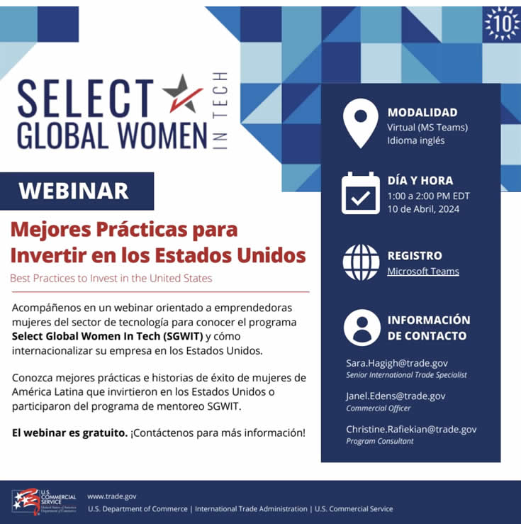 Join our Director María Luisa Lord, a mentor for women investors at the U.S. Department of Commerce.